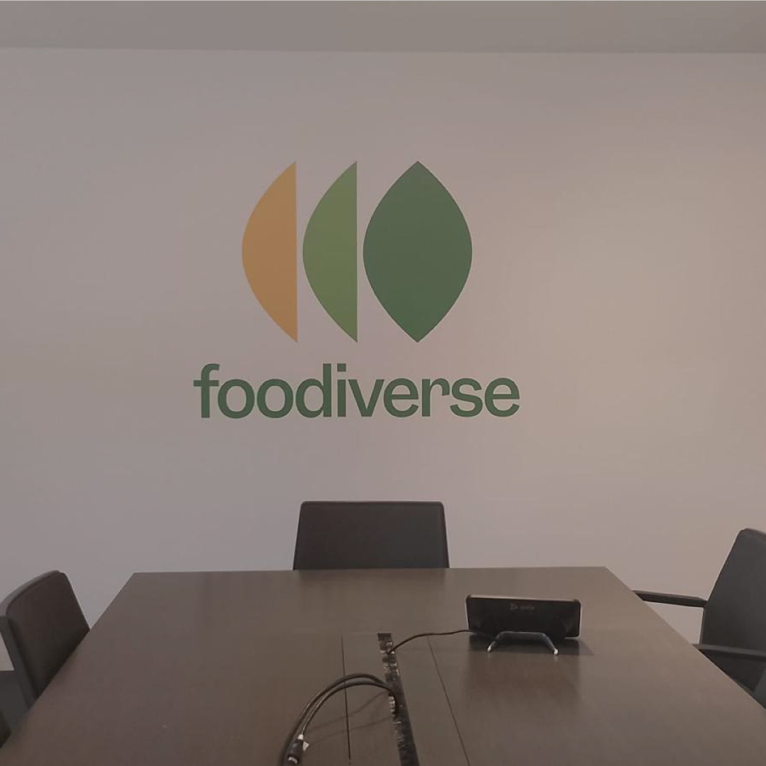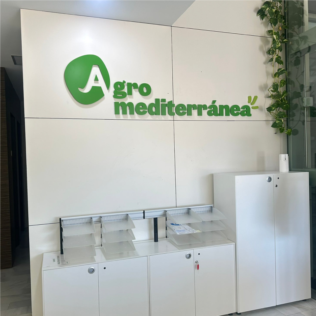 Diseño producción y montaje de corpóreos y vinilos en las oficinas de Agromediterránea.